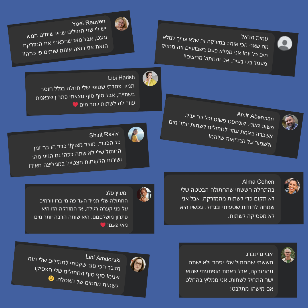 אחרי המון שינויים ומחשבה על איכות ושיפור המוצרים שלנו הגענו למתכון המושלם שמבדל אותנו מכל המתחרים שלנו. שירות חם ואוהב ואינספור לקוחות מרוצים - זה פטנט פריים.